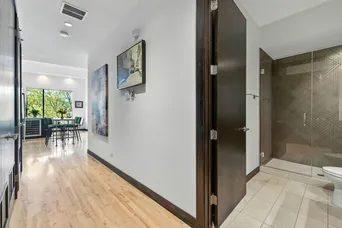 Welcome home to this stunning 2-bedroom, 2-bathroom + den duplex-up condo in a boutique elevator building in the heart of Wicker Park! Inside you're greeted by sun drenched, south facing windows overlooking the treetops, filling the home with natural light. The open-concept living area features soaring ceilings and hardwood floors throughout, seamlessly connected to the well-appointed kitchen. Boasting granite countertops, Bosch stainless steel appliances, a wine fridge, and 42" cabinetry, perfect for both everyday living and entertaining. The main level includes a full bathroom and a versatile second bedroom complete with a built-in Murphy bed and an expansive closet. Upstairs, the den makes the ideal home office or Peloton room with access to your private 10' x 18' deck, perfect for lounging and taking in skyline views. The massive primary suite is a true retreat, offering a separate lounge space, large windows, an organized walk-in closet, and a spa-like bath with dual vanities, an air-jet soaking tub, and a separate rain shower with body sprays. Additional highlights include 8-foot solid doors, heated attached garage parking, and ample storage. Set in a boutique, heavily owner-occupied building with low assessments, this home offers the best of city living with all of Wicker Park right outside your door. Just moments from the Six Corners, the Damen Blue Line, Milwaukee and Damen Avenue shops, nightlife, restaurants, the 606 Trail and quick access to downtown and expressways.